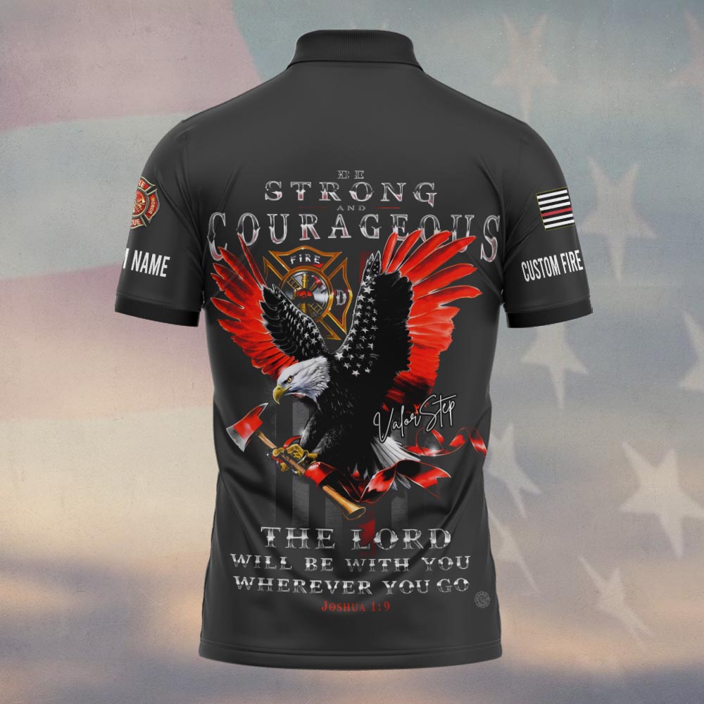 Custom Dept & Name Be Strong & Courageous Firefighter Faith #DQH0124 – Polo