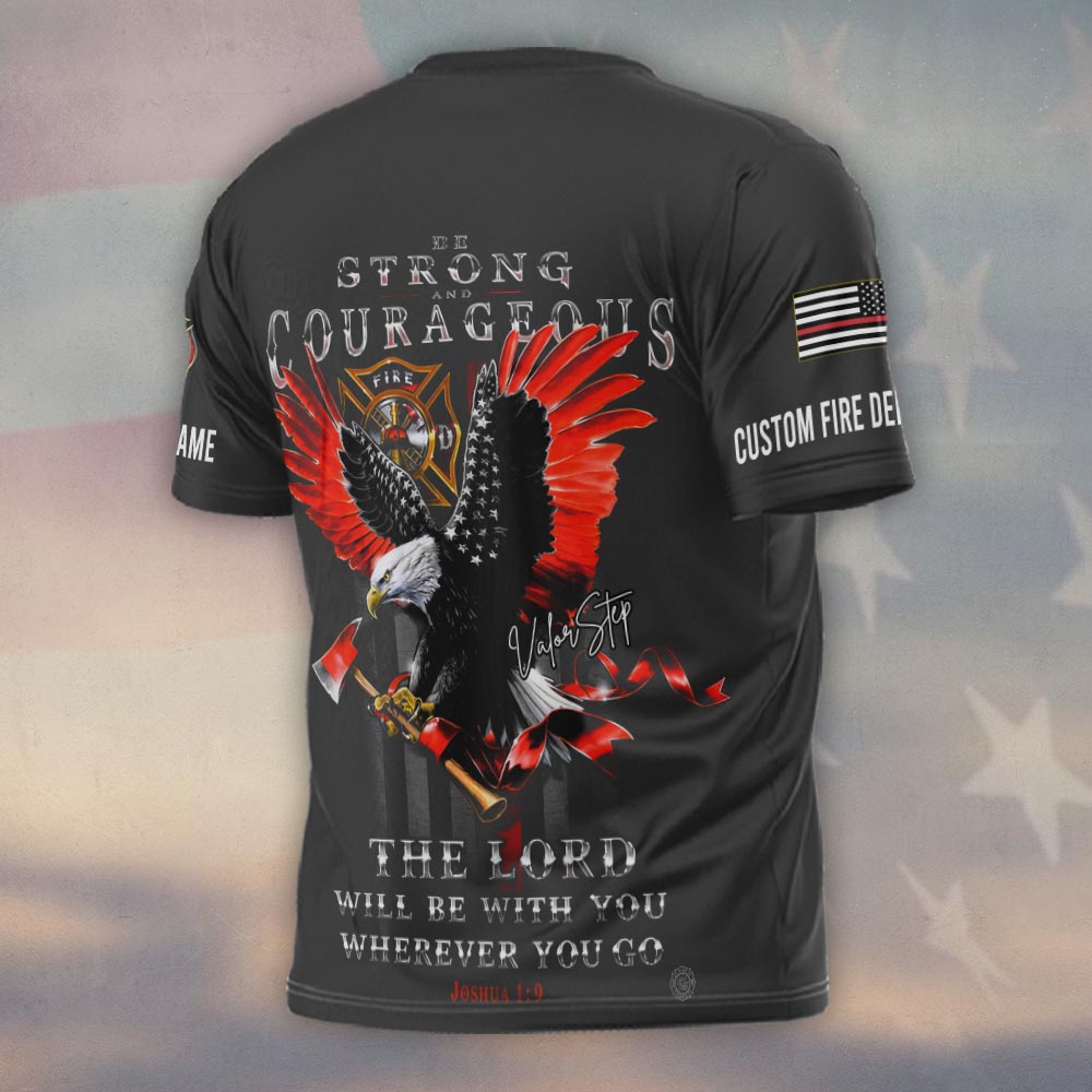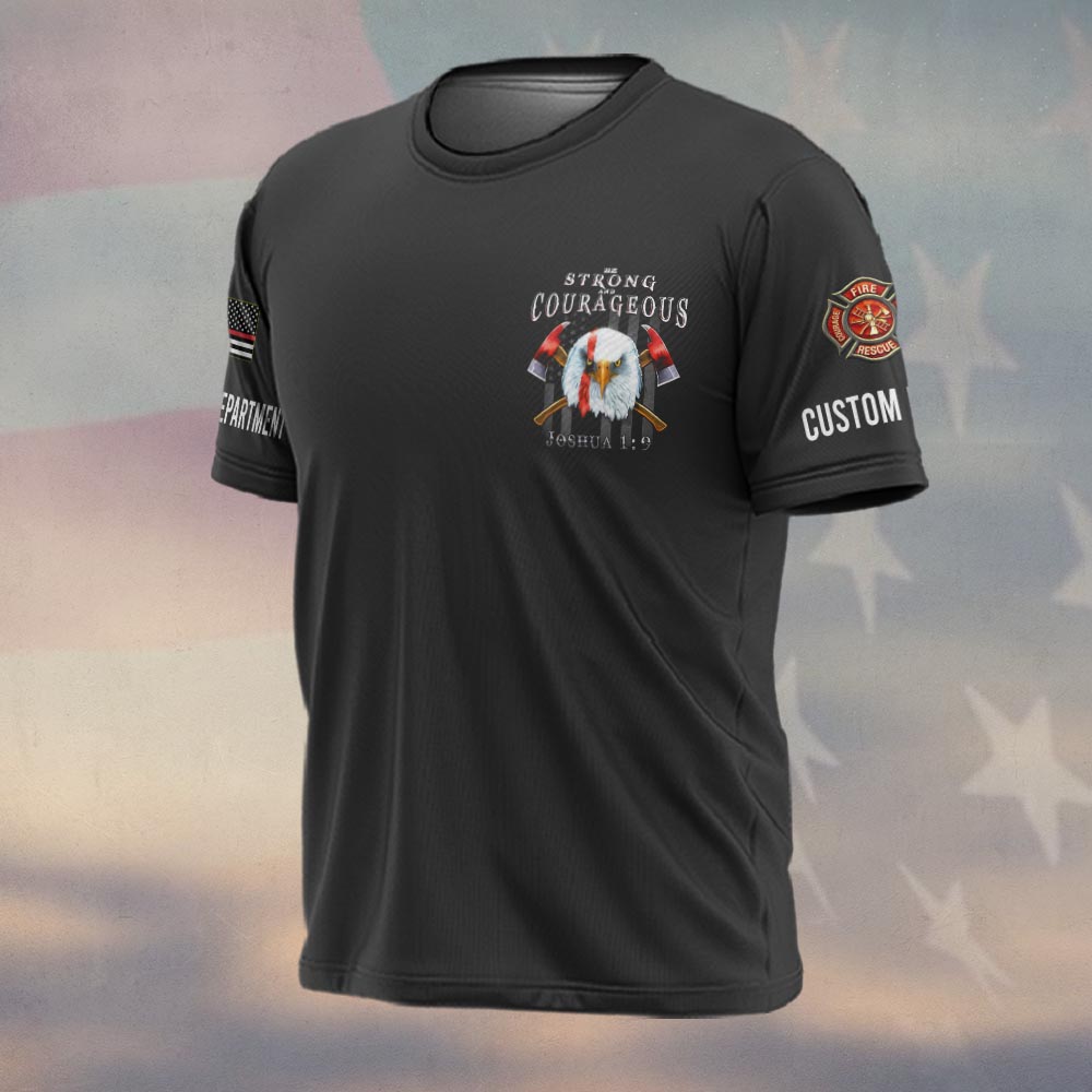 Custom Dept & Name Be Strong & Courageous Firefighter Faith #DQH0124 – T-shirt