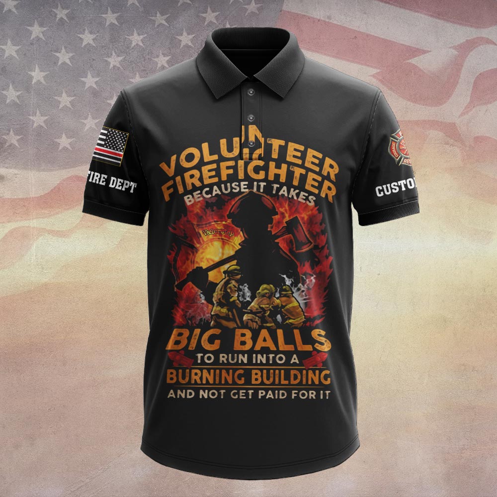 Custom Dept & Name Big Balls. Bigger Heart – Volunteer Firefighter #DQH0022 – Polo