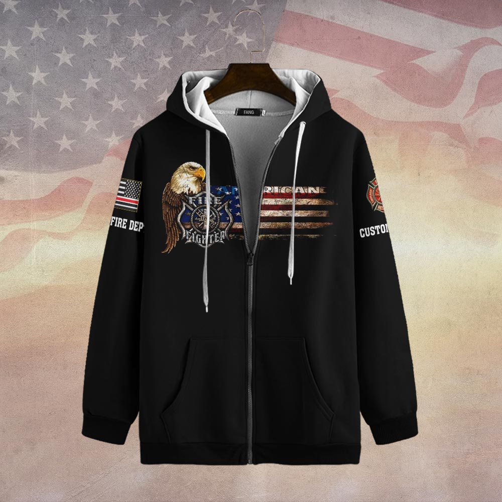 Custom Dept & Text American Eagle – Firefighter Pride #DQH0095 – Zip Hoodie
