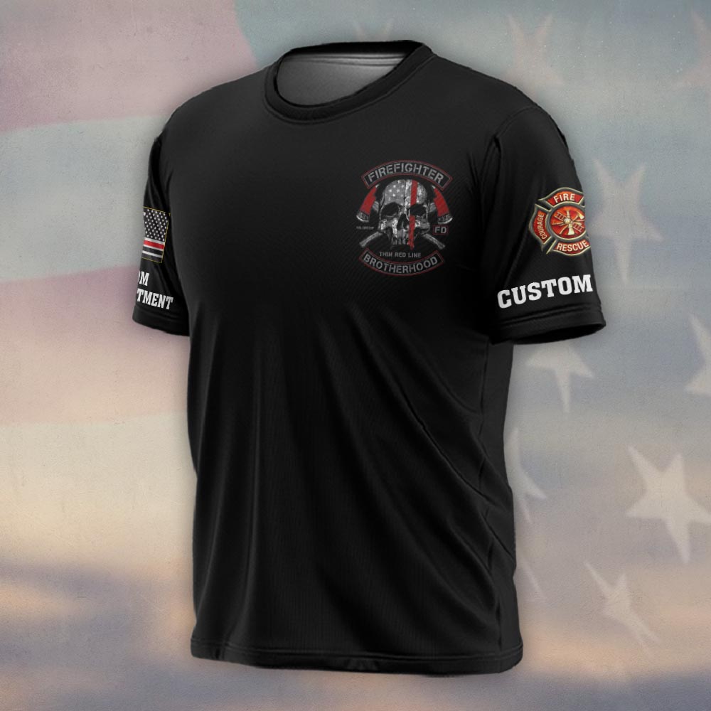 Custom Dept & Text Firefighter Thin Redline Brotherhood #DQH0065 – T-shirt
