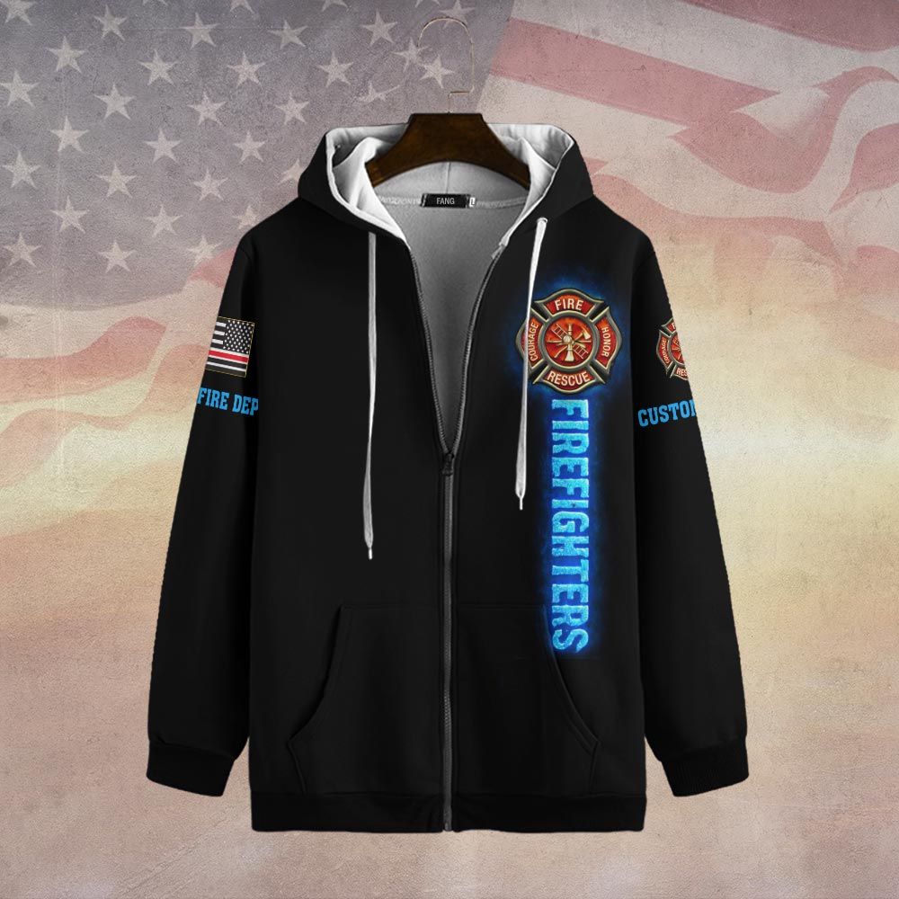 Be the first to review “Custom Dept & Text Firefighter’s Faith – Blue Flame Cross Edition #DQH0084 – Zip Hoodie”