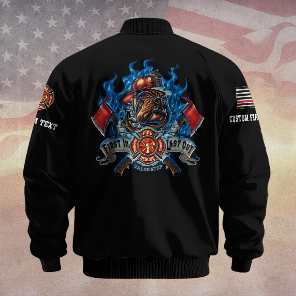 Custom Dept & Text First In, Last Out – Bulldog Fire Rescue #DQH0093 – Bomber Jacket
