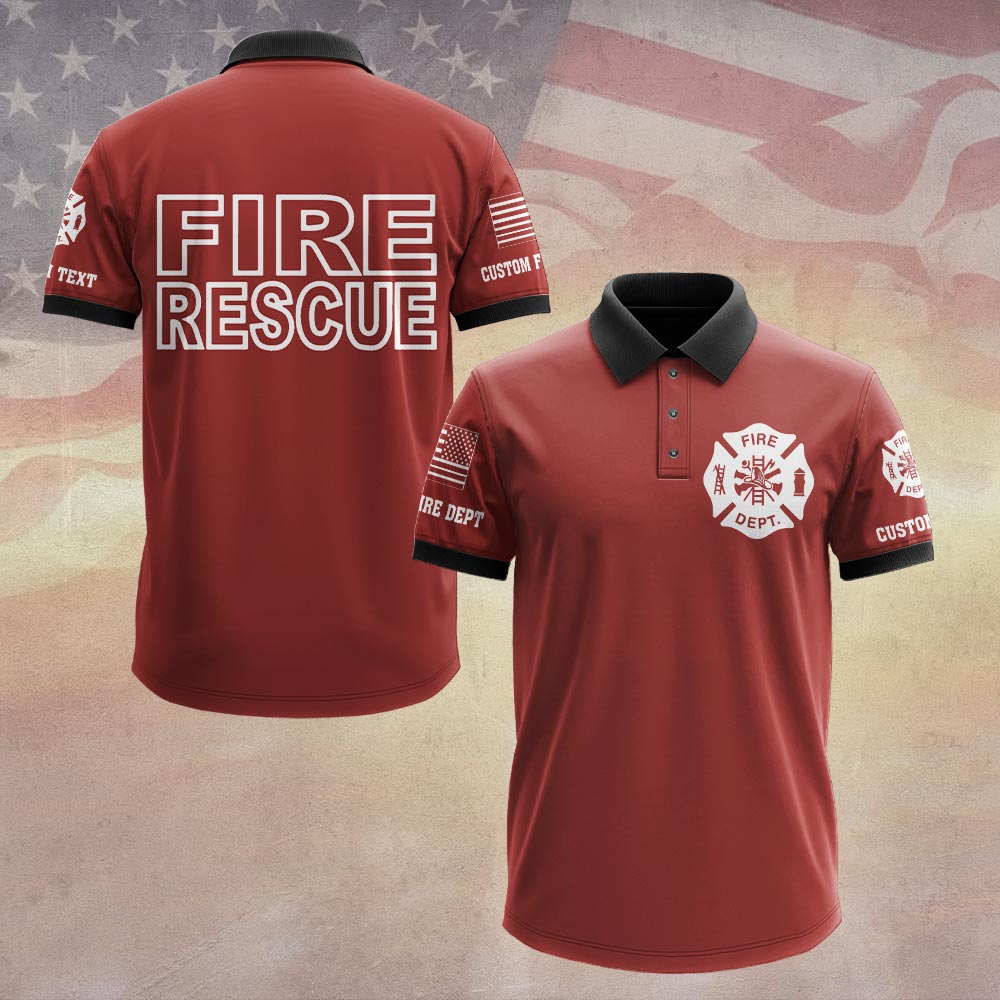 Be the first to review “Custom Dept & Text Red Fire Rescue #DQH0105 – Polo”