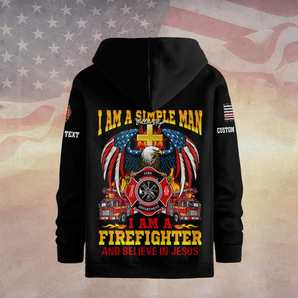 Custom Dept & Text Simple Man – Firefighter Who Believes in Jesus #DQH0083 – Hoodie