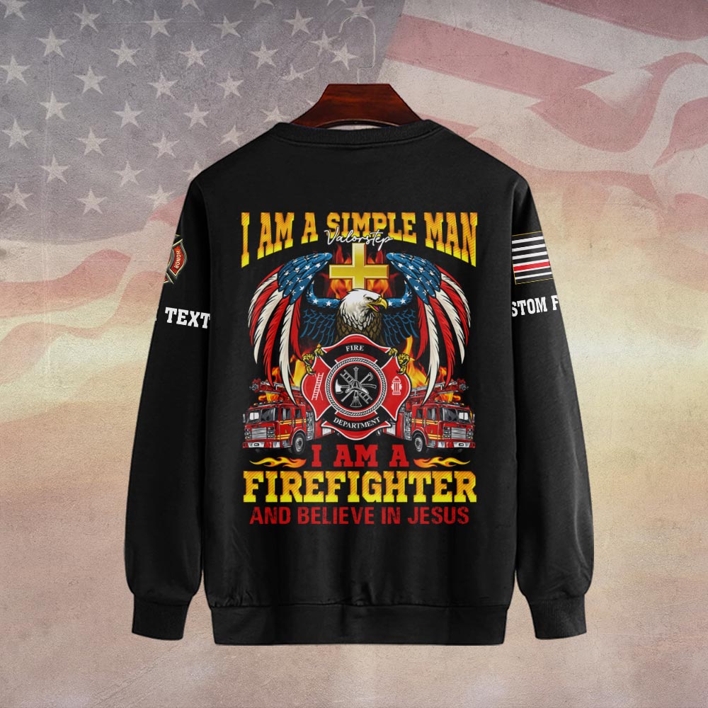 Custom Dept & Text Simple Man – Firefighter Who Believes in Jesus #DQH0083 – Sweatshirt