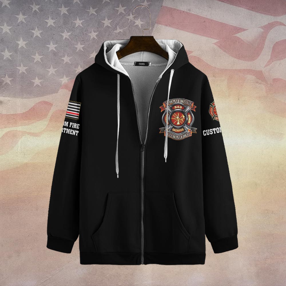 Custom Dept & Text The True Heroes Firefighter #DQH0068 – Zip Hoodie