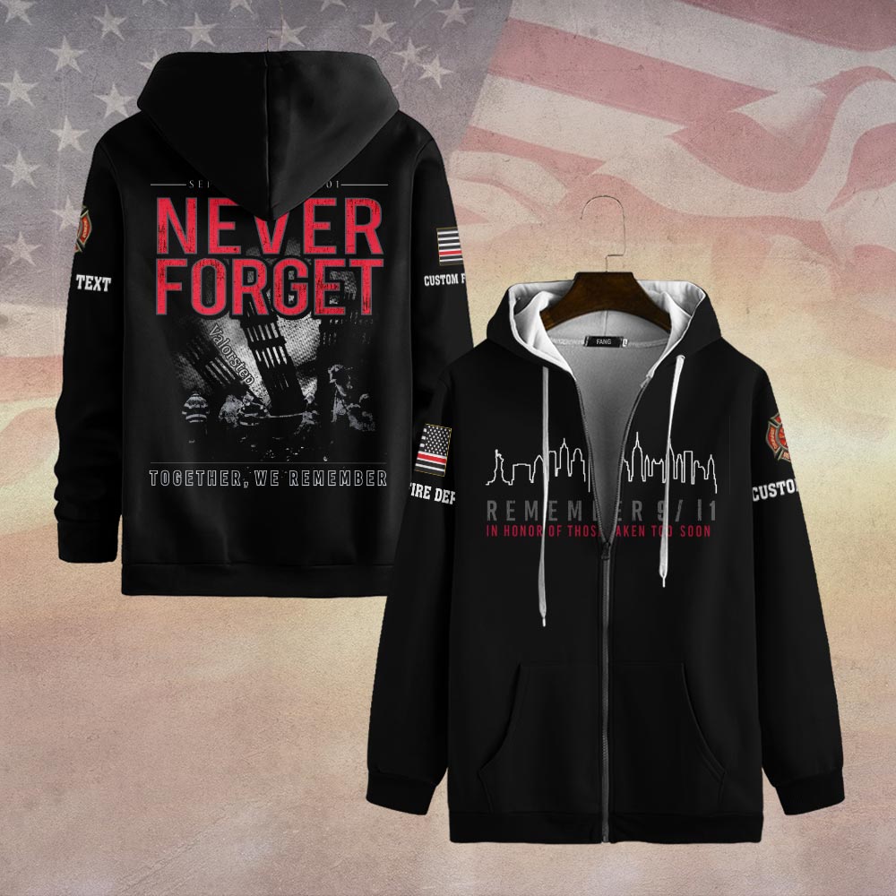 Custom Dept & Text Together We Remember – 9/11 Memorial #DQH0087 – Zip Hoodie