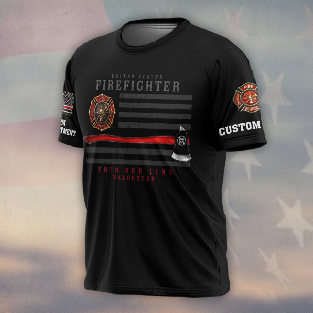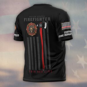 Custom Dept & Text United States Firefighter Thin Red Line #DQH0168 – T-shirt