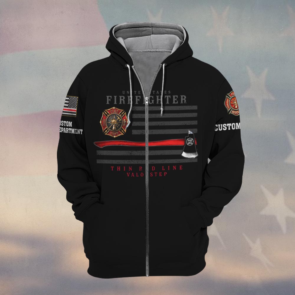 Custom Dept & Text United States Firefighter Thin Red Line #DQH0168 – Zip Hoodie