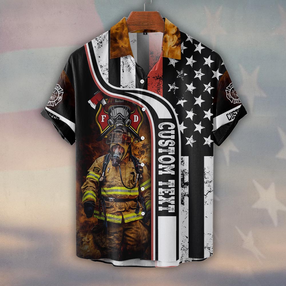 Custom Name American Fire Guardian Thin Red Line #DQH0156 – Short Sleeve Button Shirt
