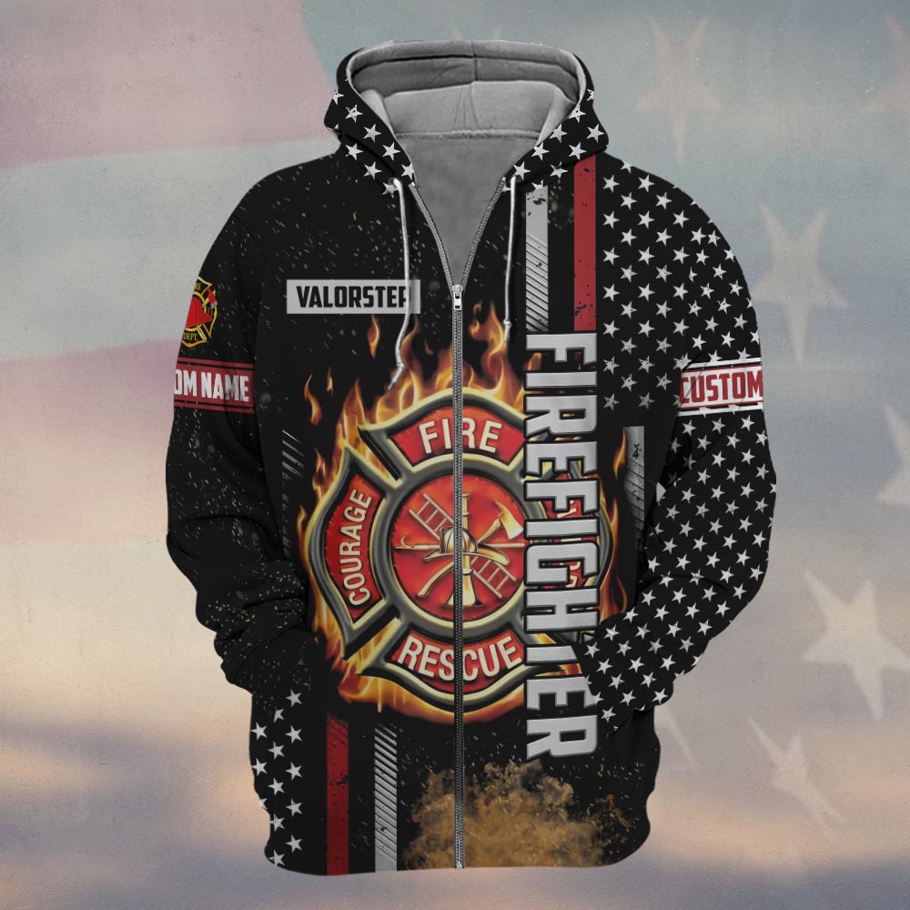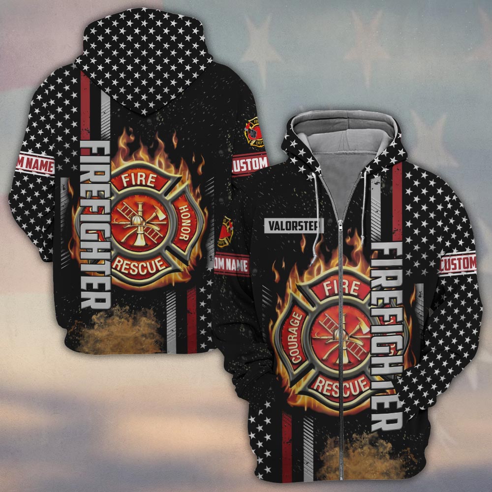 Custom Name Blazing Maltese Cross Firefighter #DQH0135 – Zip Hoodie