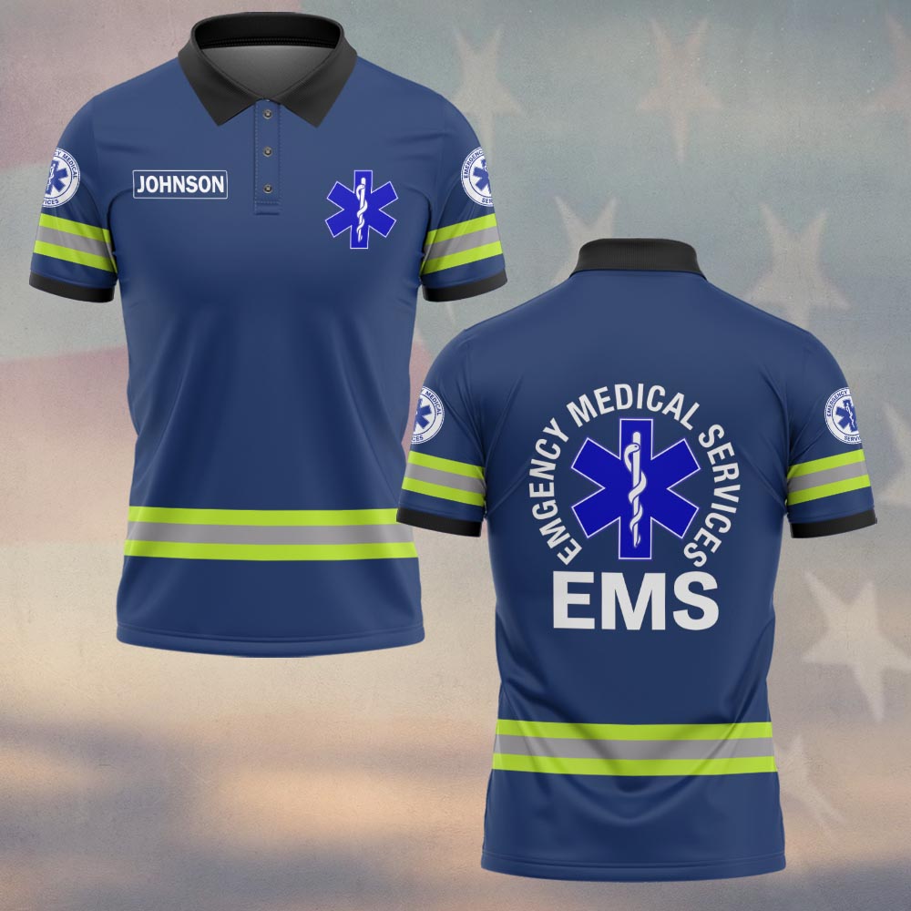 Custom Name Blue Line Medic EMS First Responders #DQH0540 – Polo