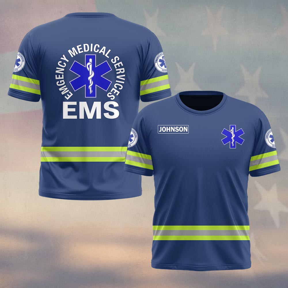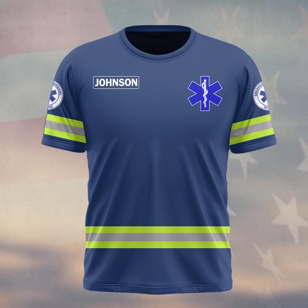 Custom Name Blue Line Medic EMS First Responders #DQH0540 – T-shirt