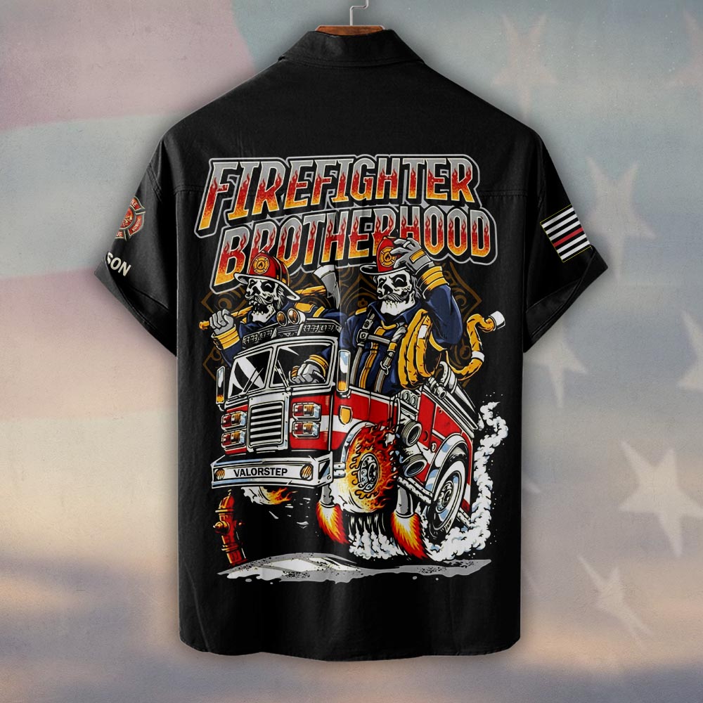 Custom Name Brotherhood of Flames Firefighter #DQH0191 – Short Sleeve Button Shirt