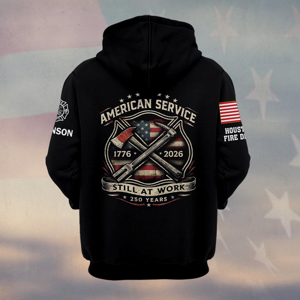 Custom Name & Department 250 Years American Service Still At Works Firefighter #DQH0419 – Hoodie