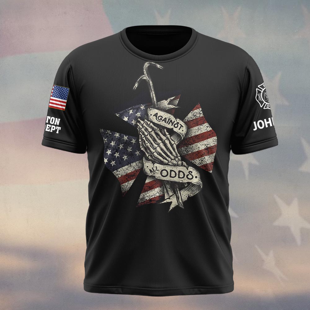 Custom Name & Department Against All Odds Unbreakable Fireline Firefighter #DQH0646 – T-shirt