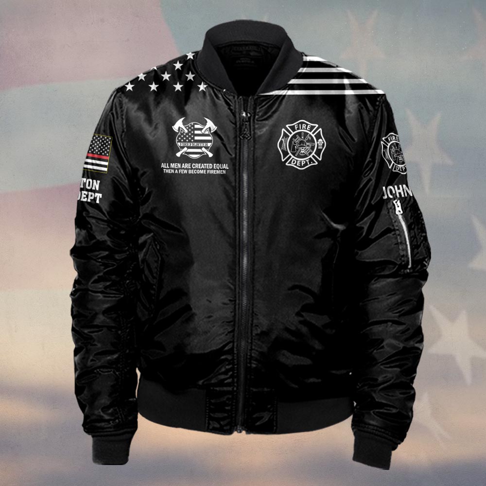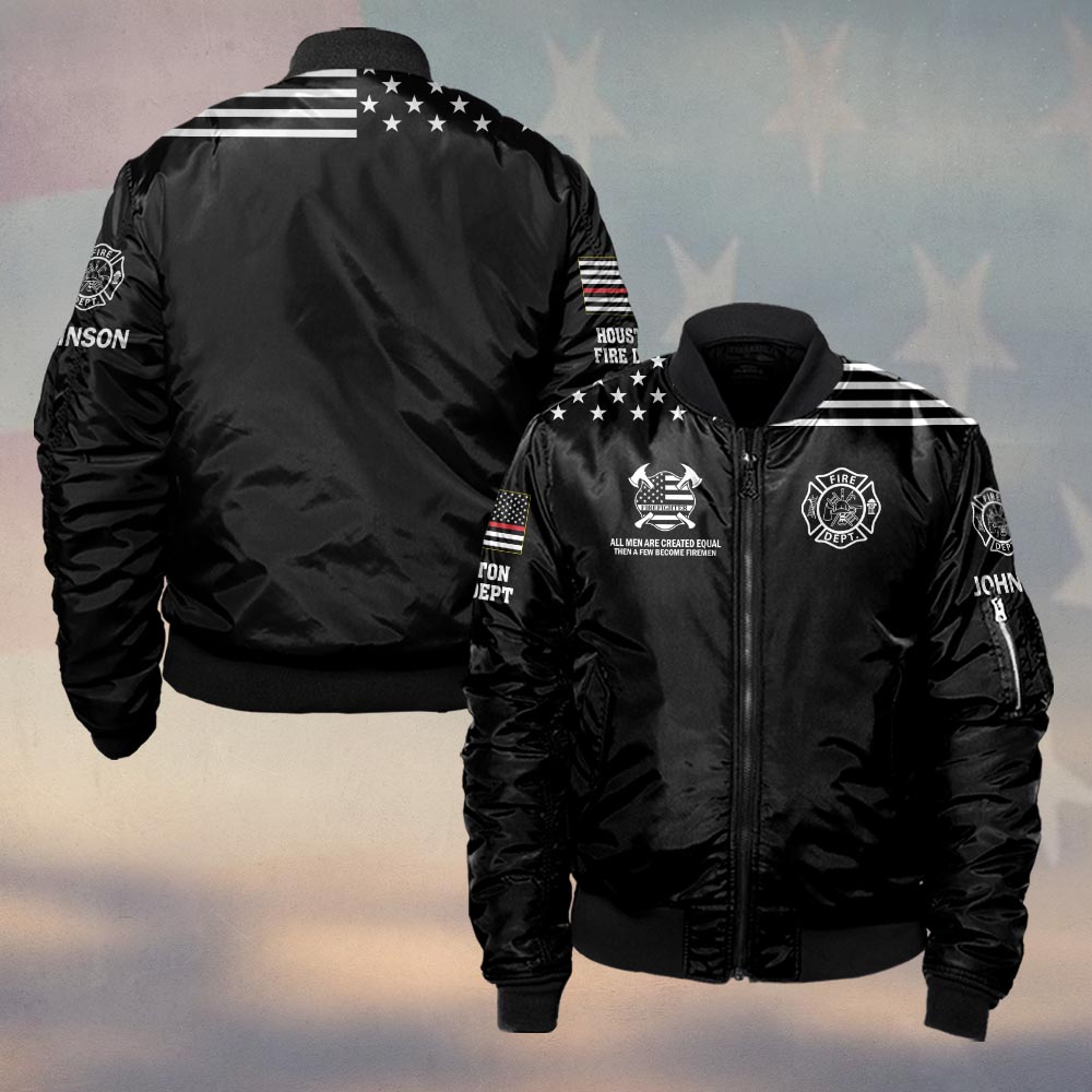 Custom Name & Department All Men Are Created Equal American Flag Edition #DQH0504 – Bomber Jacket
