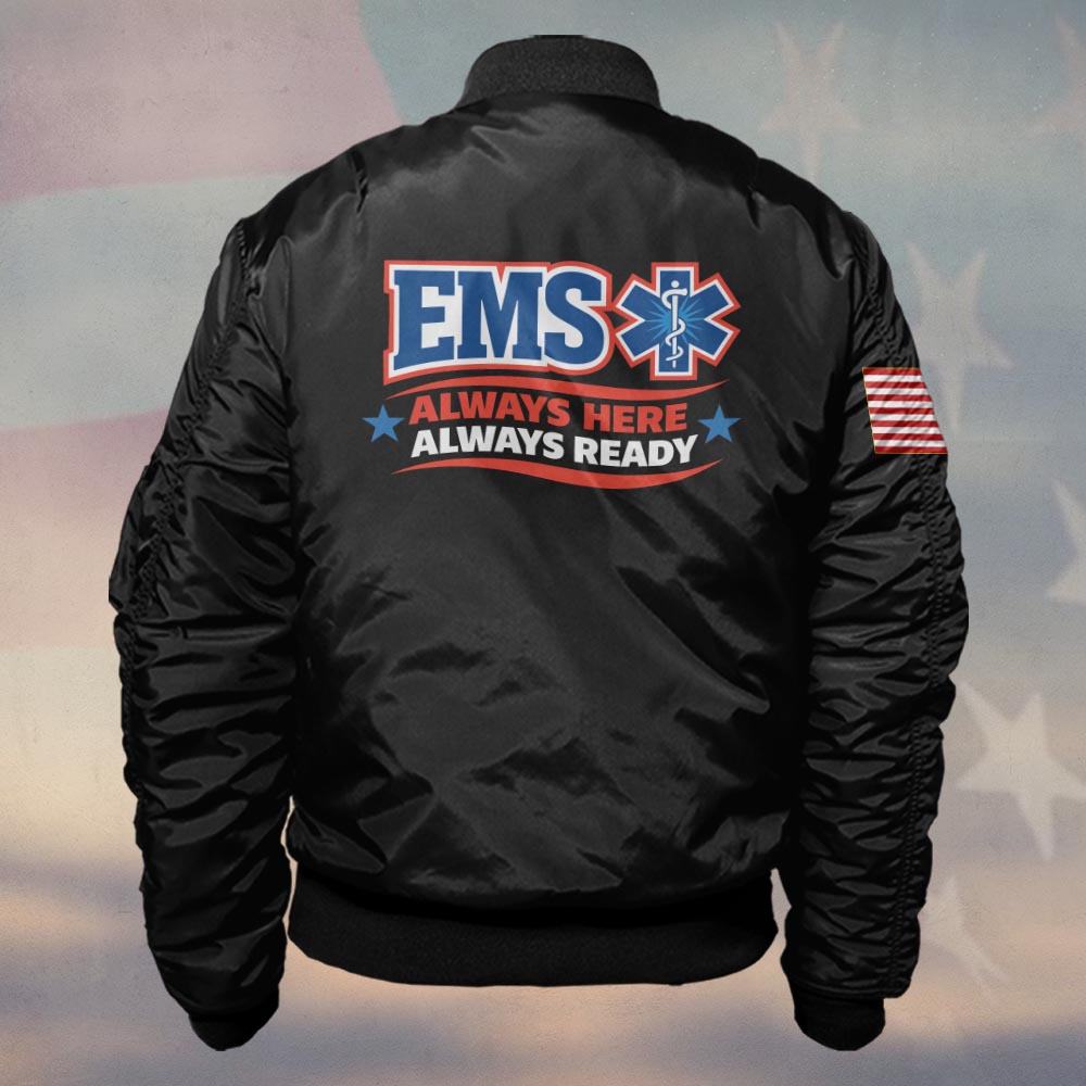 Custom Name & Department Always Here, Always Ready EMS First Responders #DQH0467 – Bomber Jacket