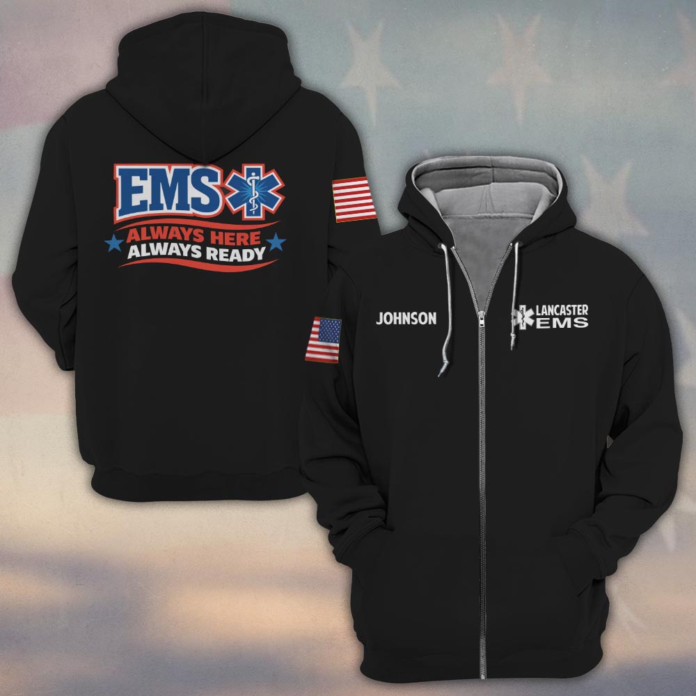 Custom Name & Department Always Here, Always Ready EMS First Responders #DQH0467 – Zip Hoodie