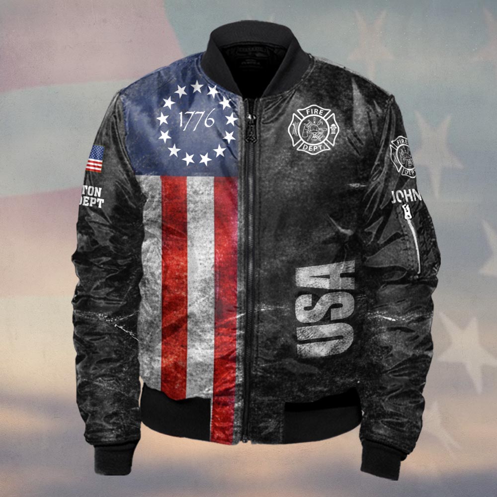 Custom Name & Department American Fire Heritage Firefighters #DQH0511 – Bomber Jacket