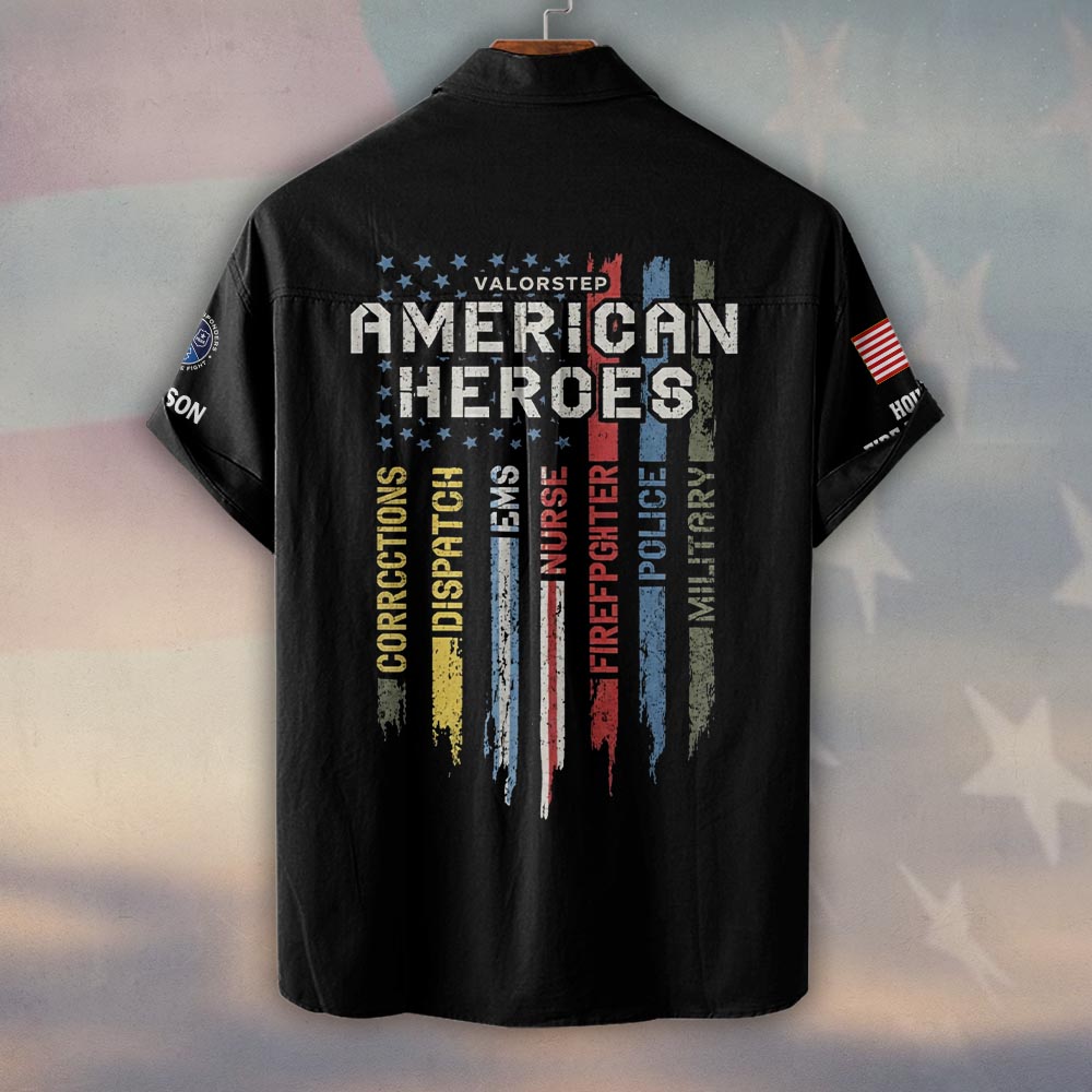 Custom Name & Department American Heroes First Responders #DQH0446 – Short Sleeve Button Shirt