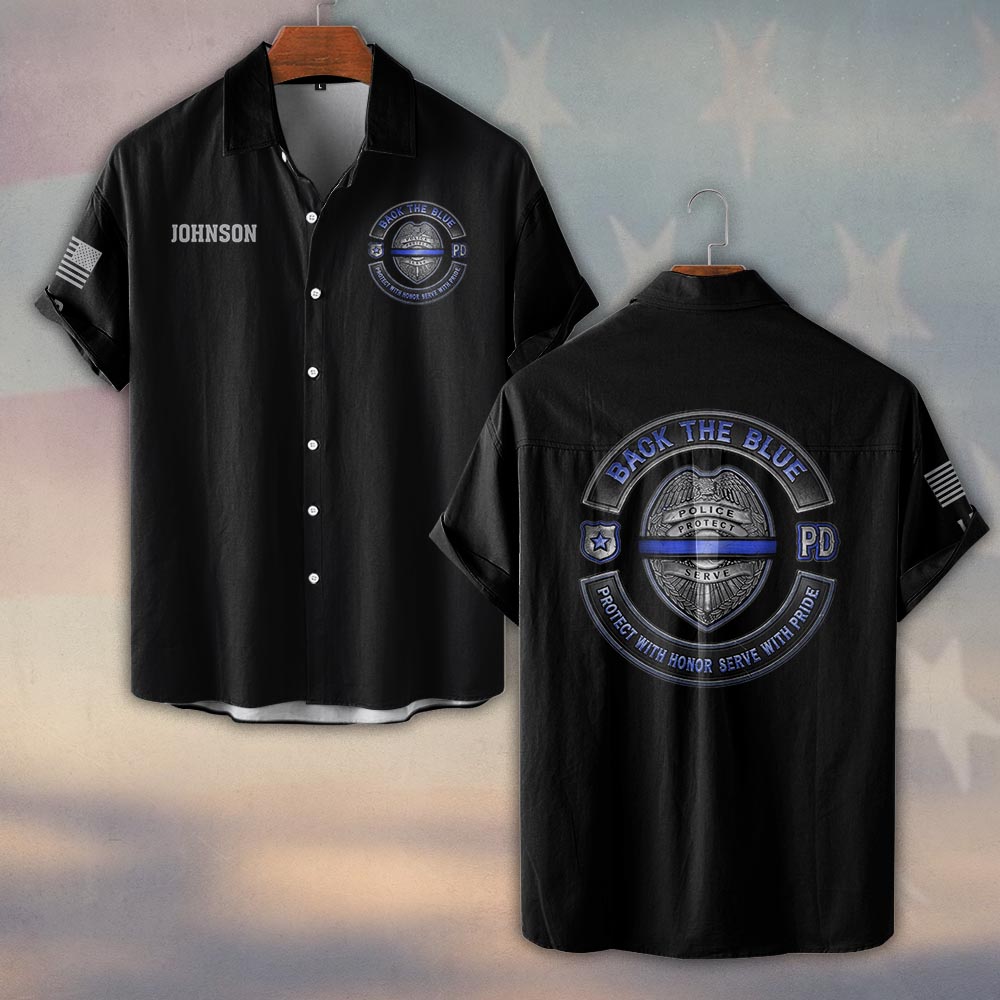Custom Name & Department Back The Blue Protect With Honor First Responders #DQH0451 – Short Sleeve Button Shirt