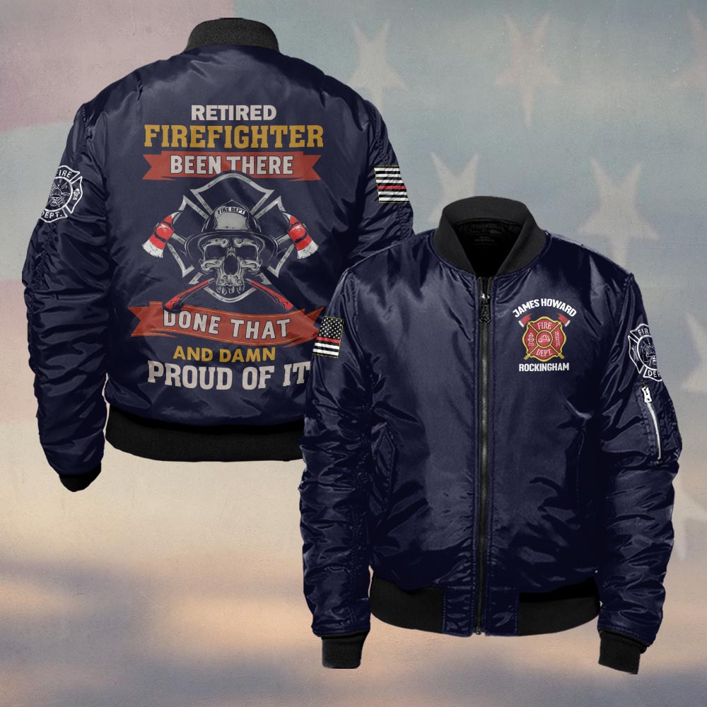 Custom Name & Department Been There, Done That, Proud of It Retired Firefighter #DQH0260 – Bomber Jacket