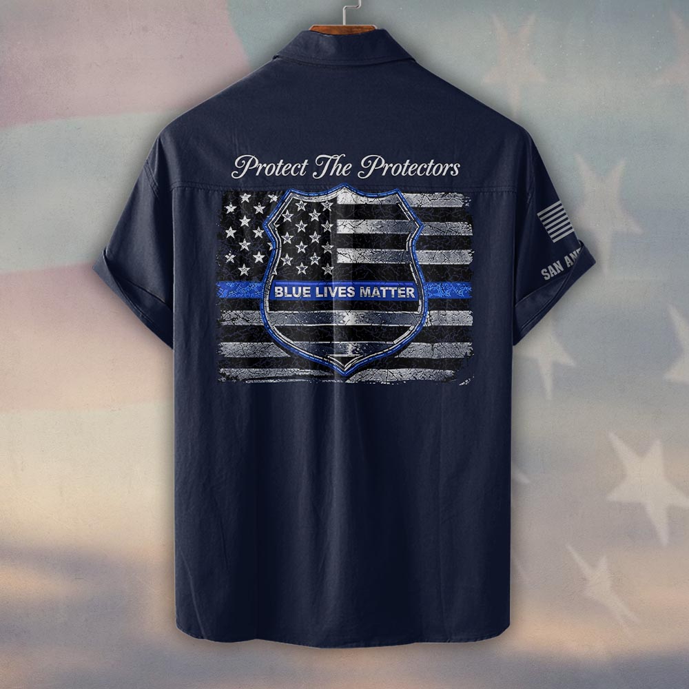 Custom Name & Department Blue Lives Matter First Responders #DQH0450 – Short Sleeve Button Shirt