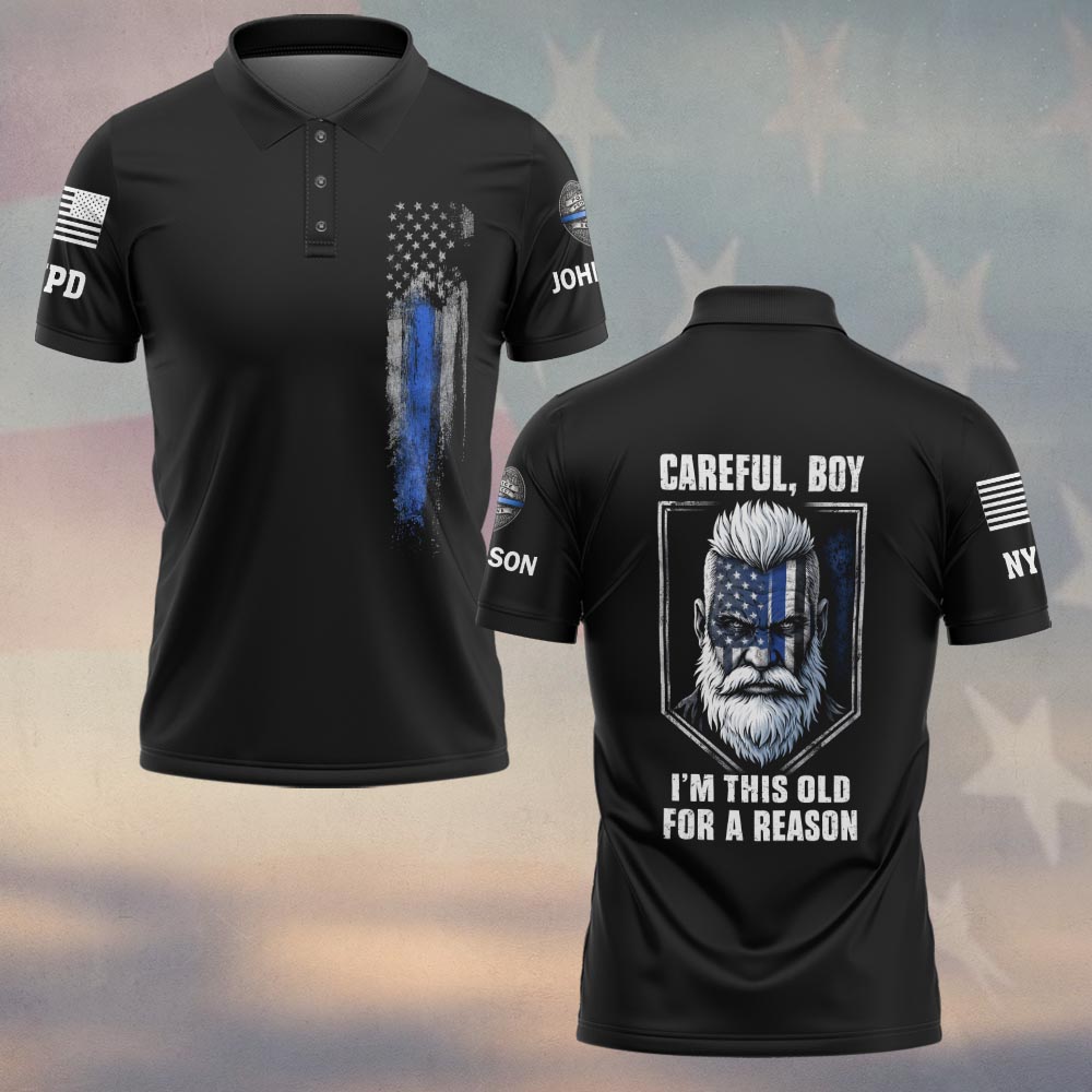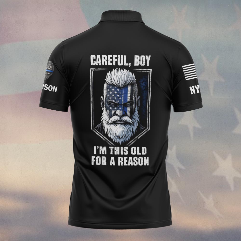 Custom Name & Department Careful Boy I’m This Old For A Reason Police Law Enforcement #DQH0480 – Polo