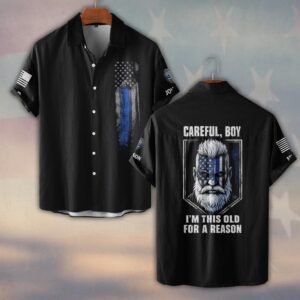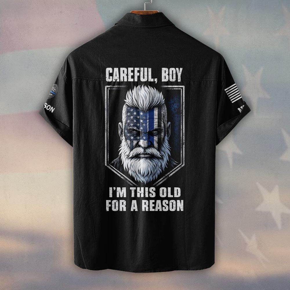 Custom Name & Department Careful Boy I’m This Old For A Reason Police Law Enforcement #DQH0480 – Short Sleeve Button Shirt