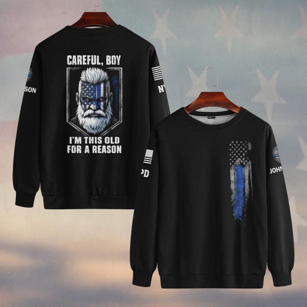 Custom Name & Department Careful Boy I’m This Old For A Reason Police Law Enforcement #DQH0480 – Sweatshirt