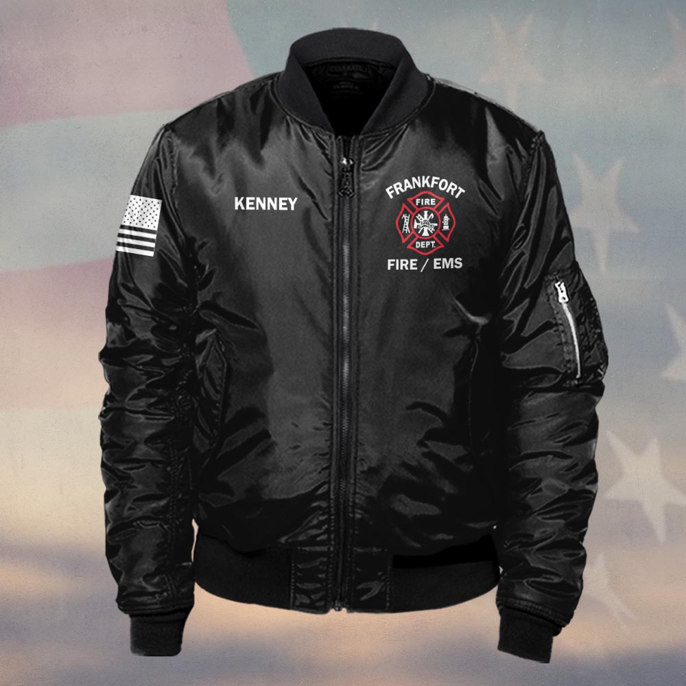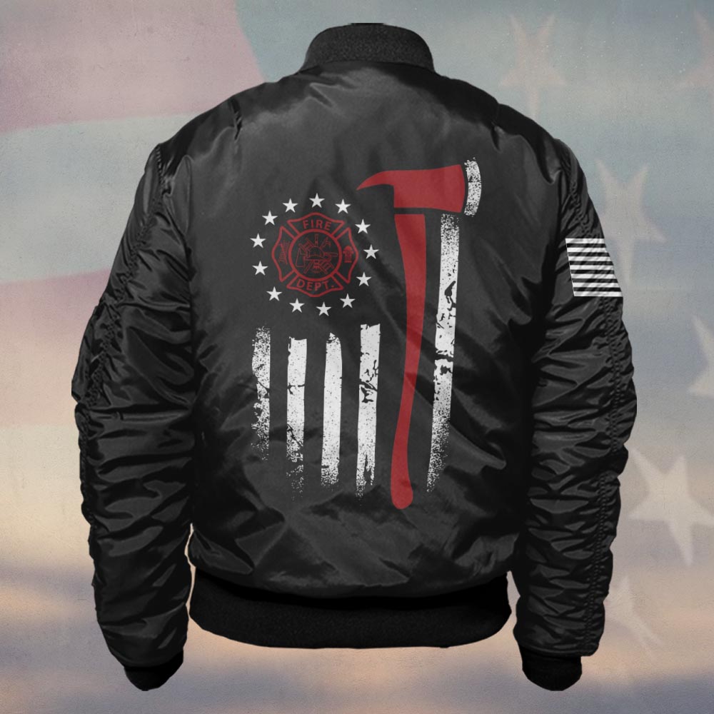 Custom Name & Department & City Red Line Axe Patriot Firefighter #DQH0398 – Bomber Jacket