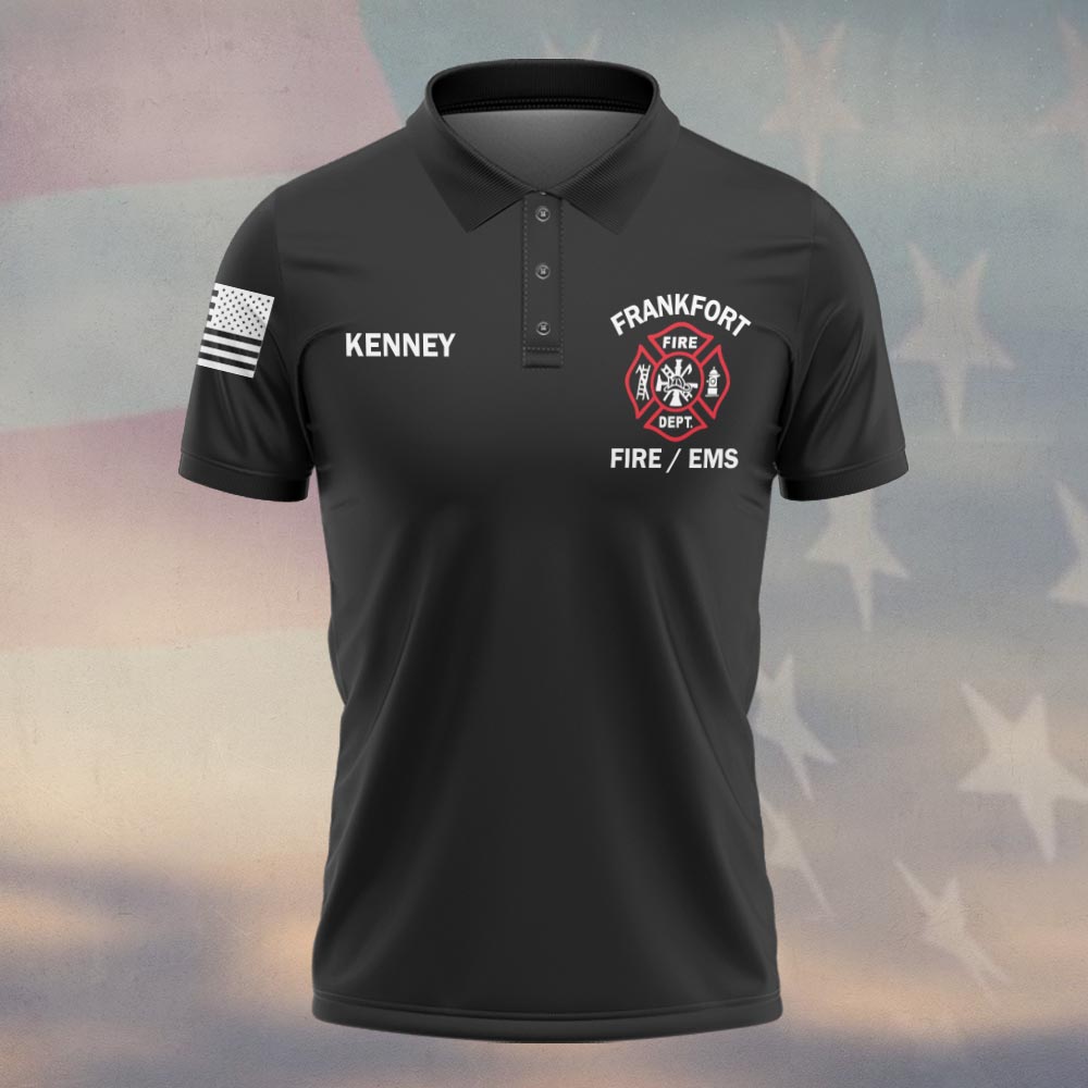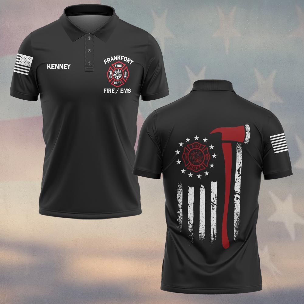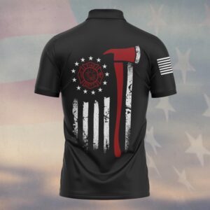 Custom Name & Department & City Red Line Axe Patriot Firefighter #DQH0398 – Polo