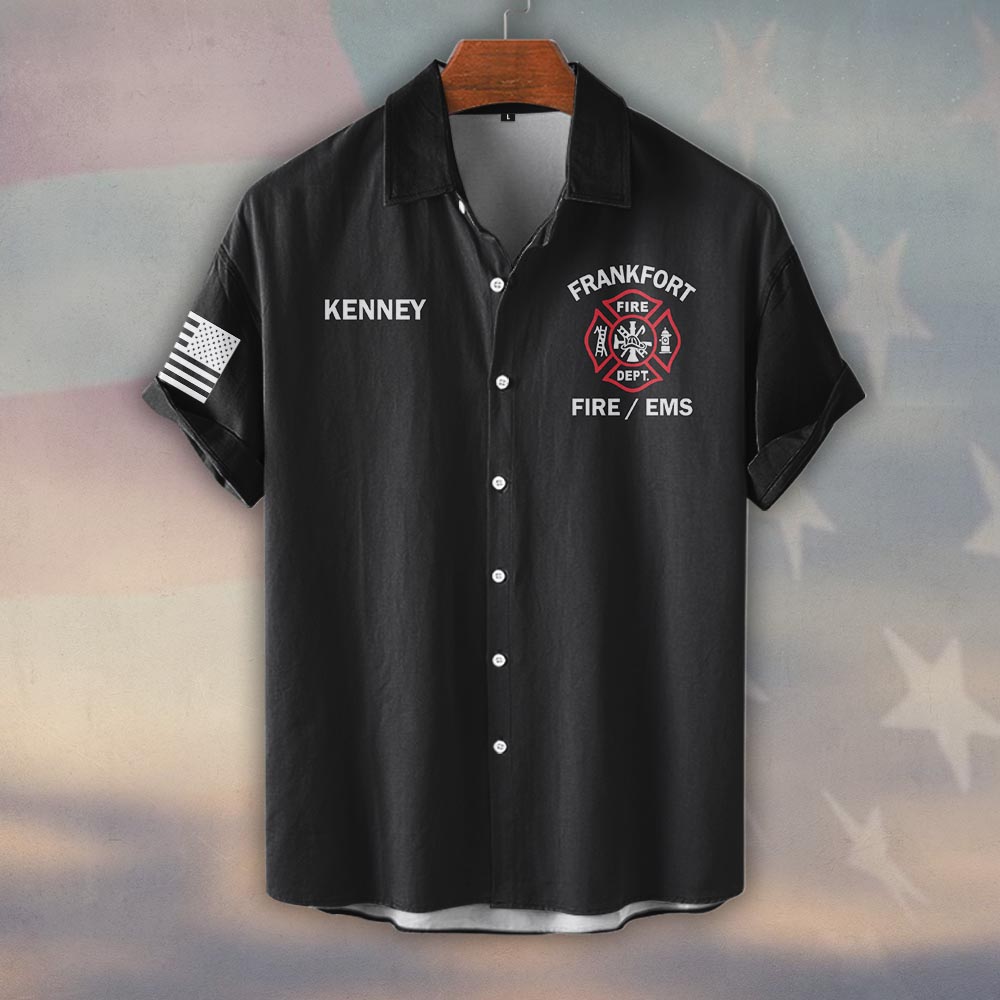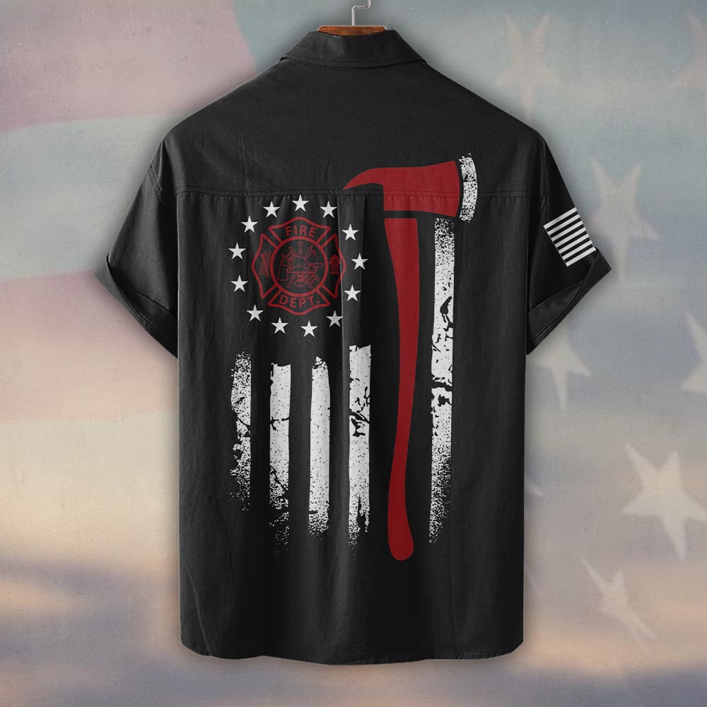 Custom Name & Department & City Red Line Axe Patriot Firefighter #DQH0398 – Short Sleeve Button Shirt