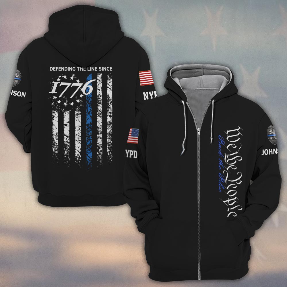 Custom Name & Department Defending The Line Since 1776 Law Enforcement #DQH0481 – Zip Hoodie