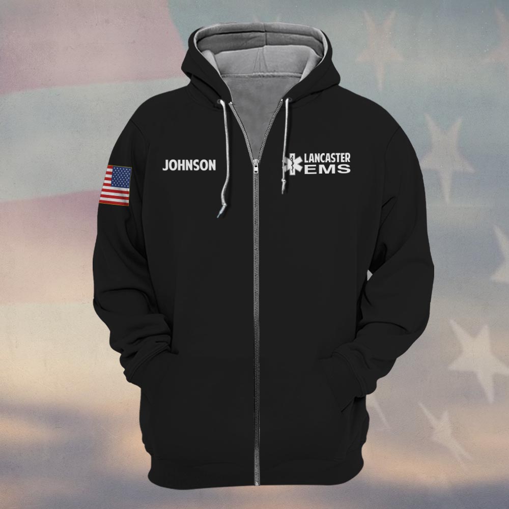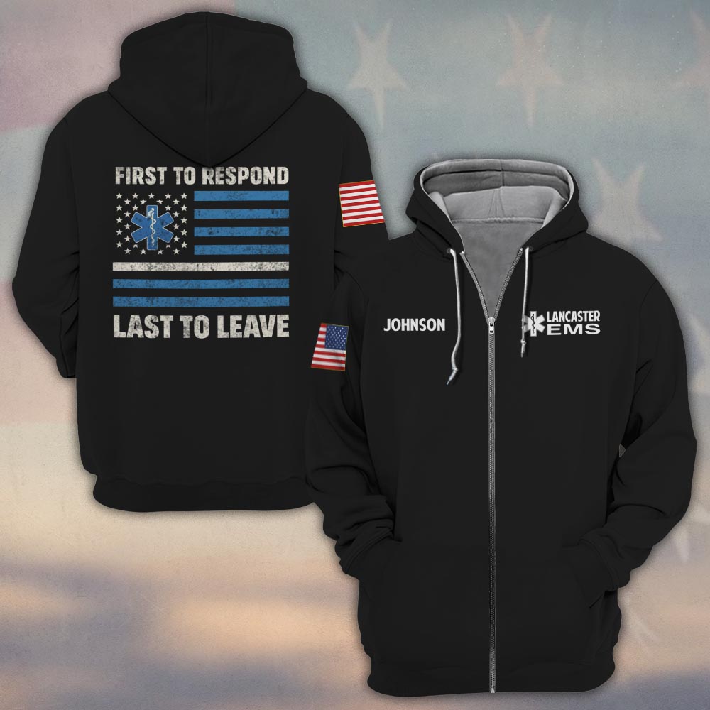 Custom Name & Department EMS First To Respond Last To Leave #DQH0469 – Zip Hoodie