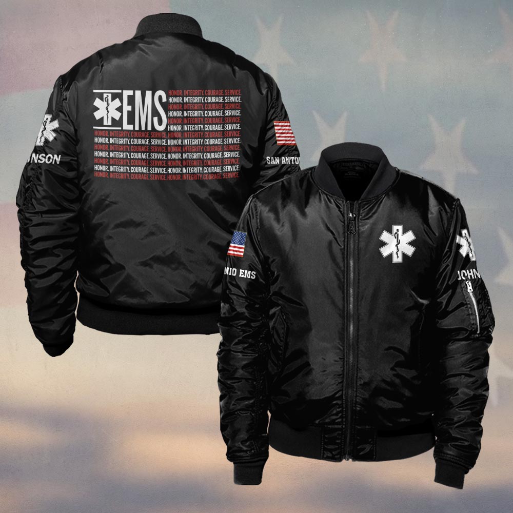 Custom Name & Department EMS Honor Integrity Courage First Responders #DQH0472 – Bomber Jacket