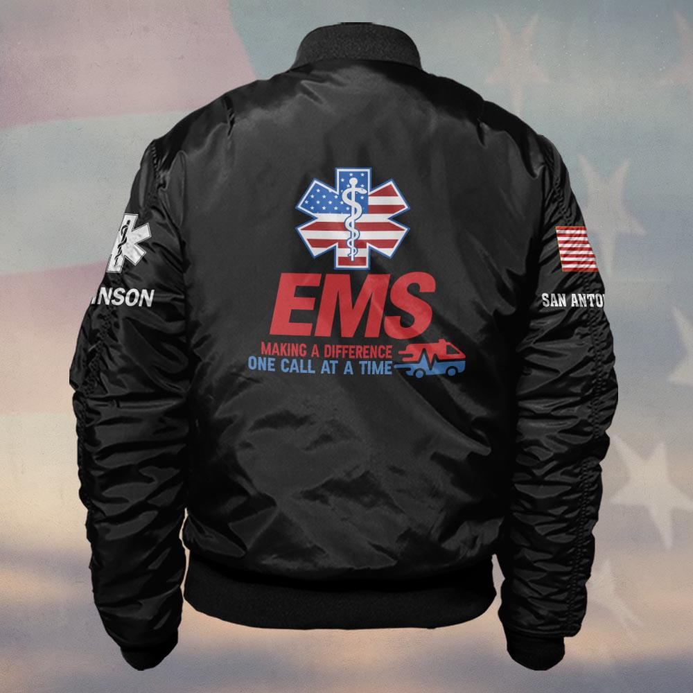 Custom Name & Department EMS One Call At A Time #DQH0474 – Bomber Jacket