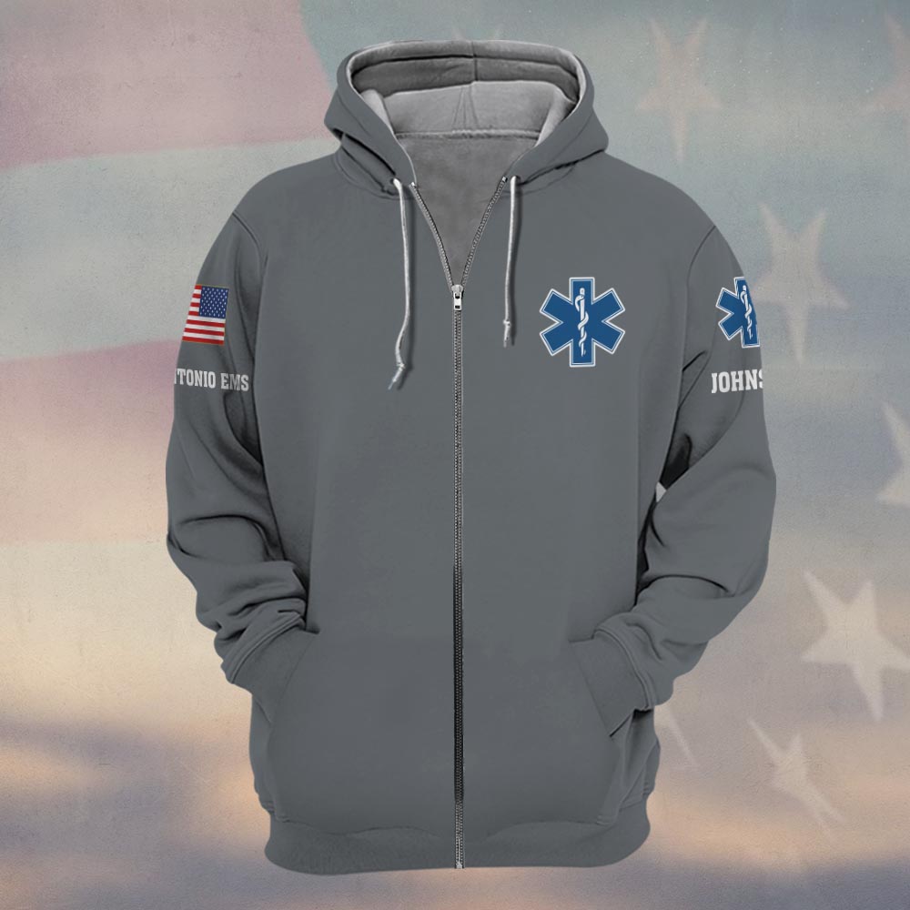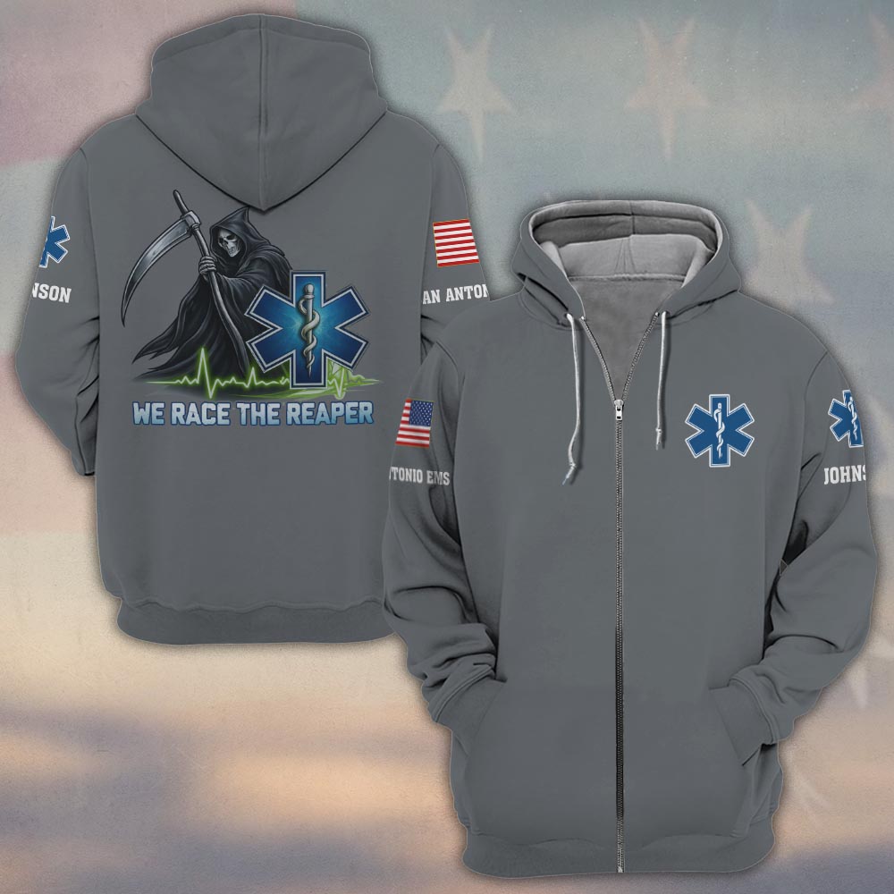 Custom Name & Department EMS We Race The Reaper First Responder #DQH0529 – Zip Hoodie