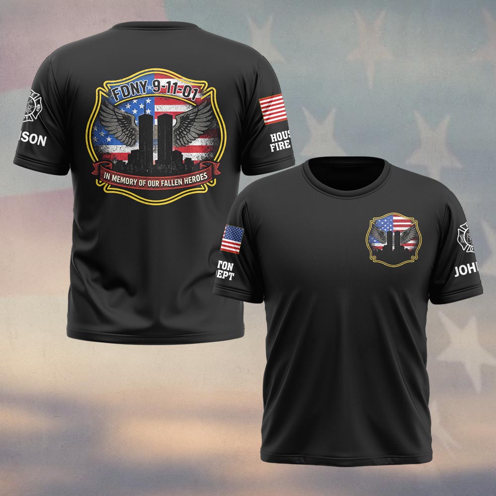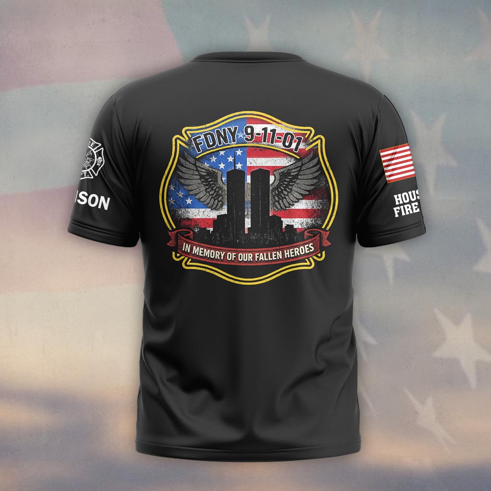 Custom Name & Department FDNY 911 In Memory Of Our Fallen Heroes Tribute Firefighters #DQH0599 – T-shirt