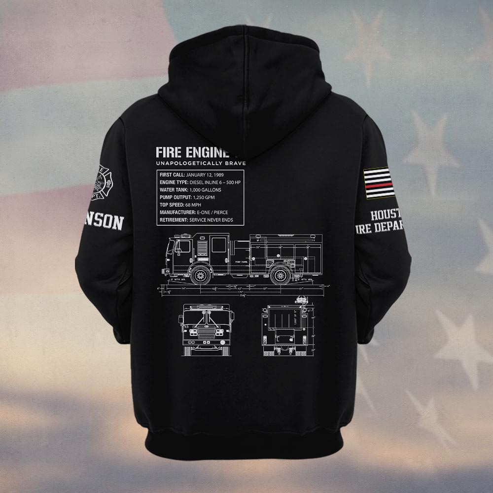 Custom Name & Department Fire Engine Blueprint – Unapologetically Brave #DQH0375 – Hoodie