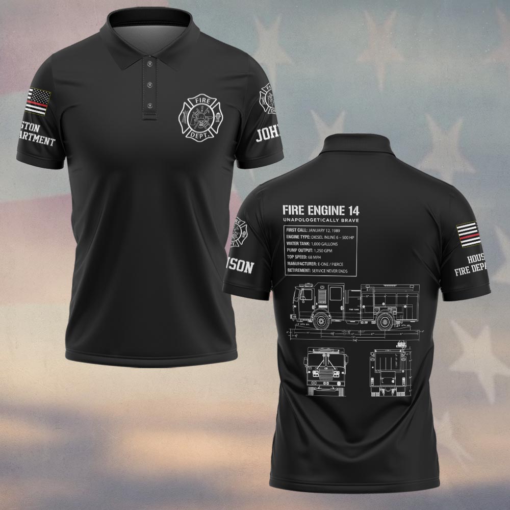 Custom Name & Department Fire Engine Blueprint – Unapologetically Brave #DQH0375 – Polo