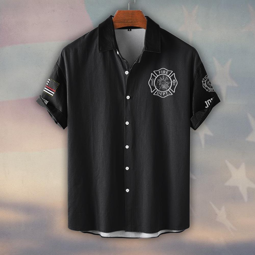 Be the first to review “Custom Name & Department Fire Engine Blueprint – Unapologetically Brave #DQH0375 – Short Sleeve Button Shirt”