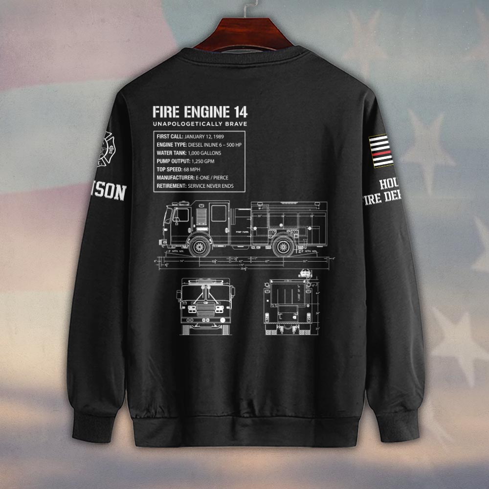 Custom Name & Department Fire Engine Blueprint – Unapologetically Brave #DQH0375 – Sweatshirt