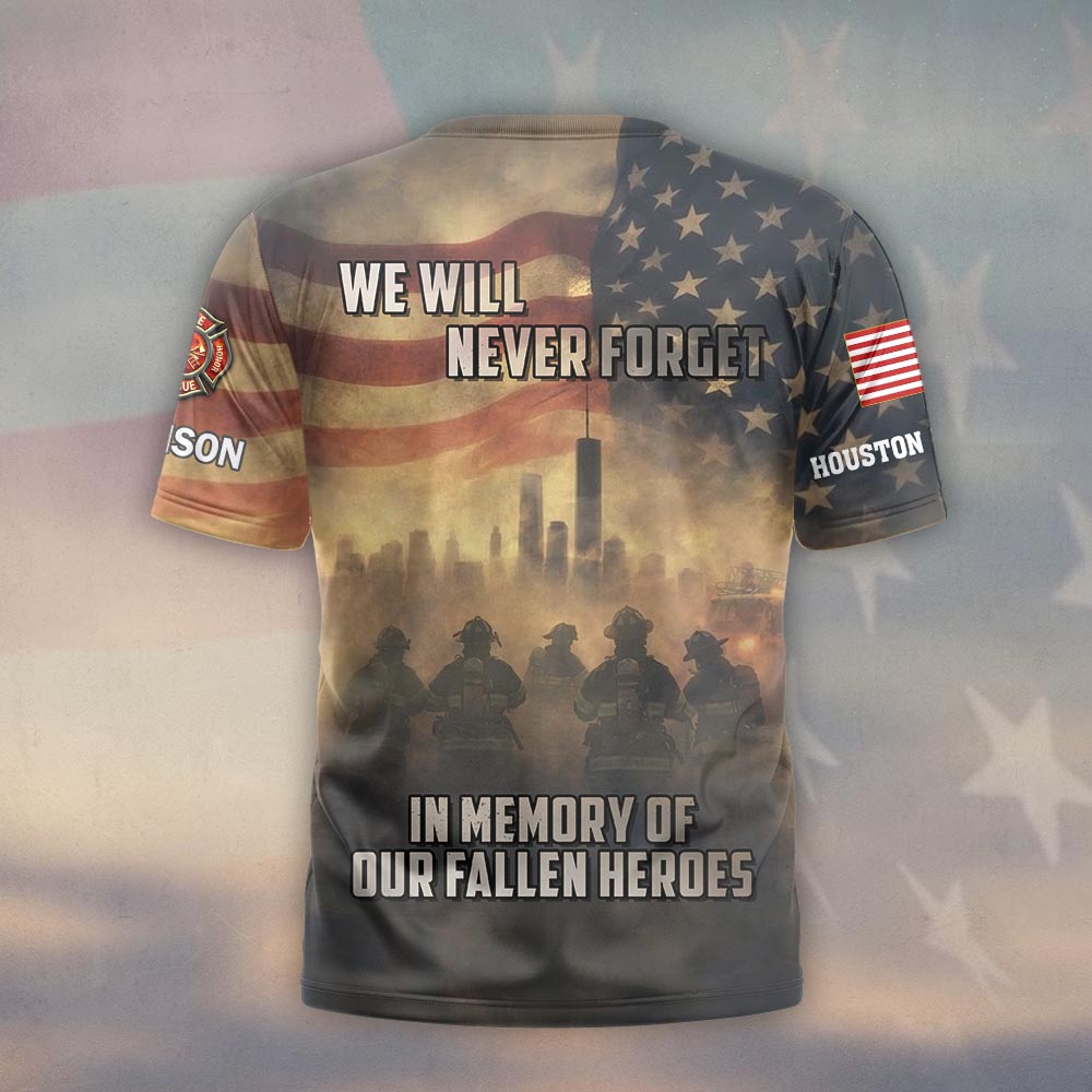 Custom Name & Department Firefighter 911 Tribute Memorial Of Fallen Heroes #DQH0568 – T-shirt