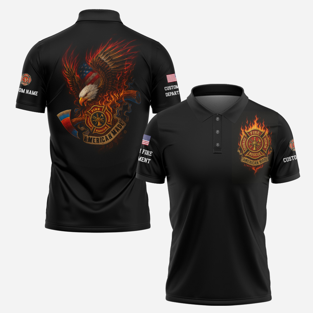 Custom Name & Department Firefighter American Made #DQH0019 – AOP Polo