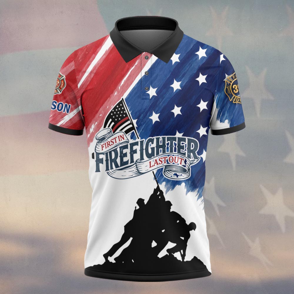Custom Name & Department Firefighter First In Last Out America Edition #DQH0503 – Polo