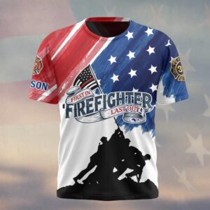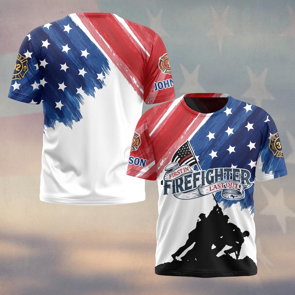 Custom Name & Department Firefighter First In Last Out America Edition #DQH0503 – T-shirt