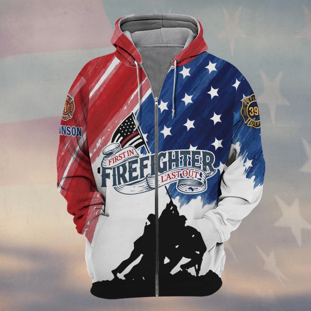 Custom Name & Department Firefighter First In Last Out America Edition #DQH0503 – Zip Hoodie